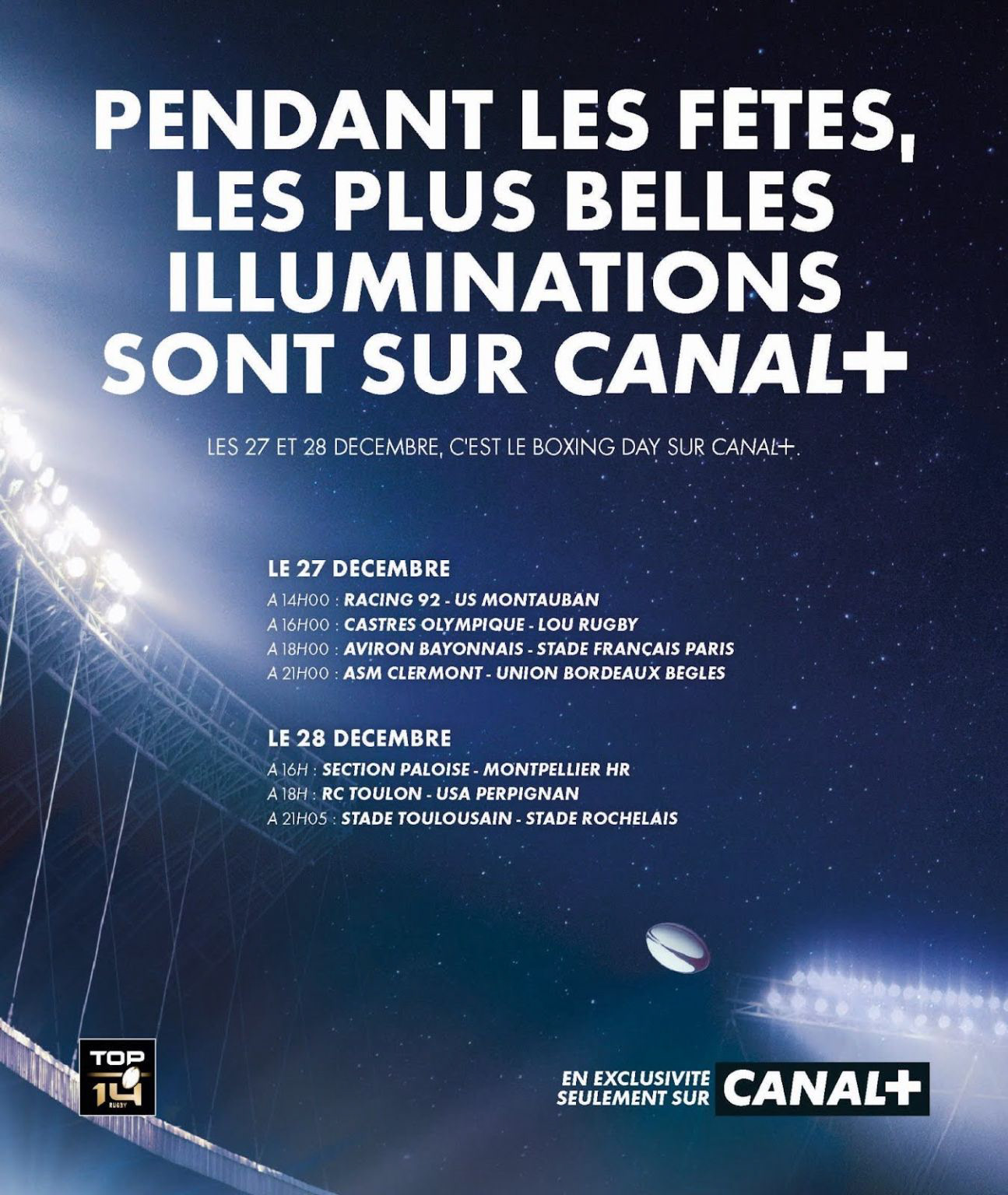 Tout le monde aime les beaux éclairages de Noël… encore plus lorsqu’ils sont accompagnés des actions de jeu magiques du Boxing Day du TOP 14.